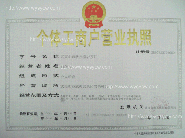 “做茶如做人,茶品即人品”是状元堂茶业的经营理念,武夷山状元堂岩茶厂诚邀各地有志之士加盟。咨询热线:0599-5310114 QQ:591287118 |