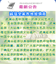 “做茶如做人,茶品即人品”是状元堂茶业的经营理念,武夷山状元堂岩茶厂诚邀各地有志之士加盟。咨询热线:0599-5310114 QQ:591287118 |