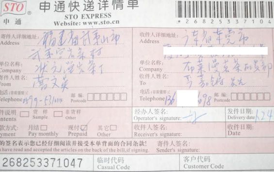 承运商:申通快递