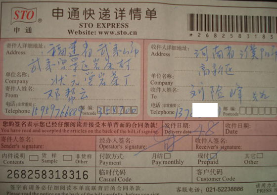 承运商:申通快递
