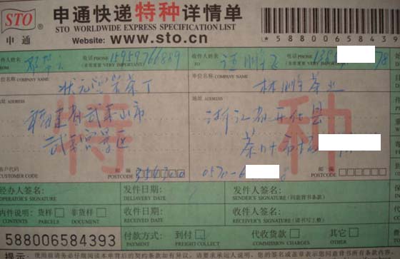 承运商:申通快递