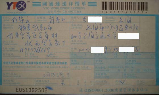 承运商:圆通快递